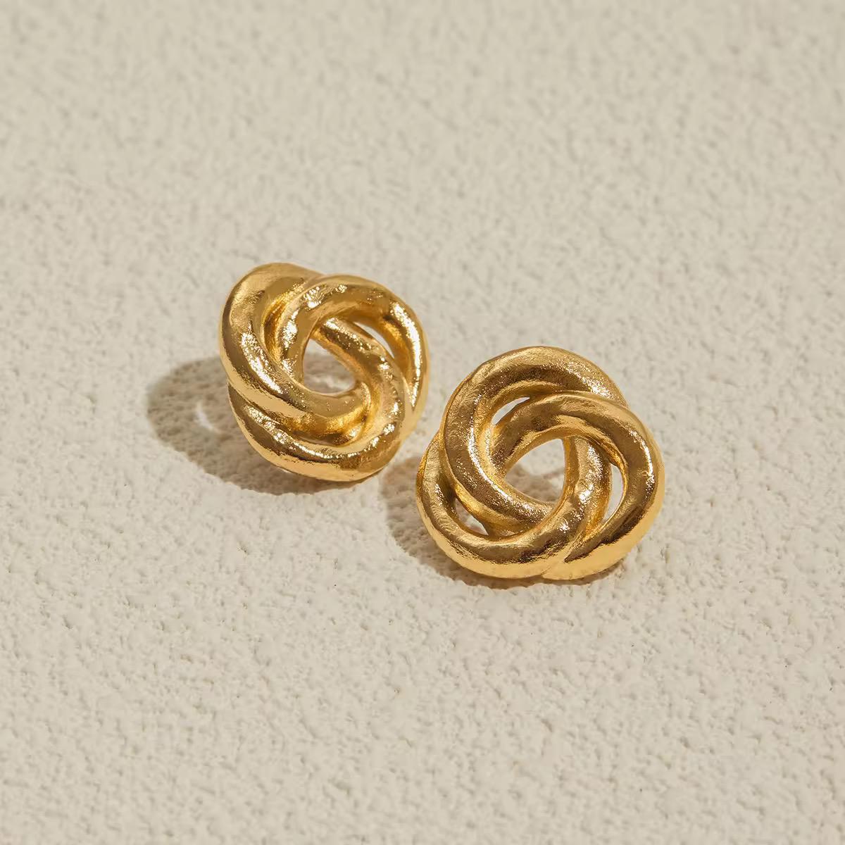 Experience the timeless elegance of our Celestial Knot Earrings, a stunning piece that symbolizes eternal love and unity. These exquisite earrings feature a unique knot design, meticulously crafted from high-quality gold-plated stainless steel. The intricate detailing and smooth finish make these earrings a captivating addition to any jewelry collection.