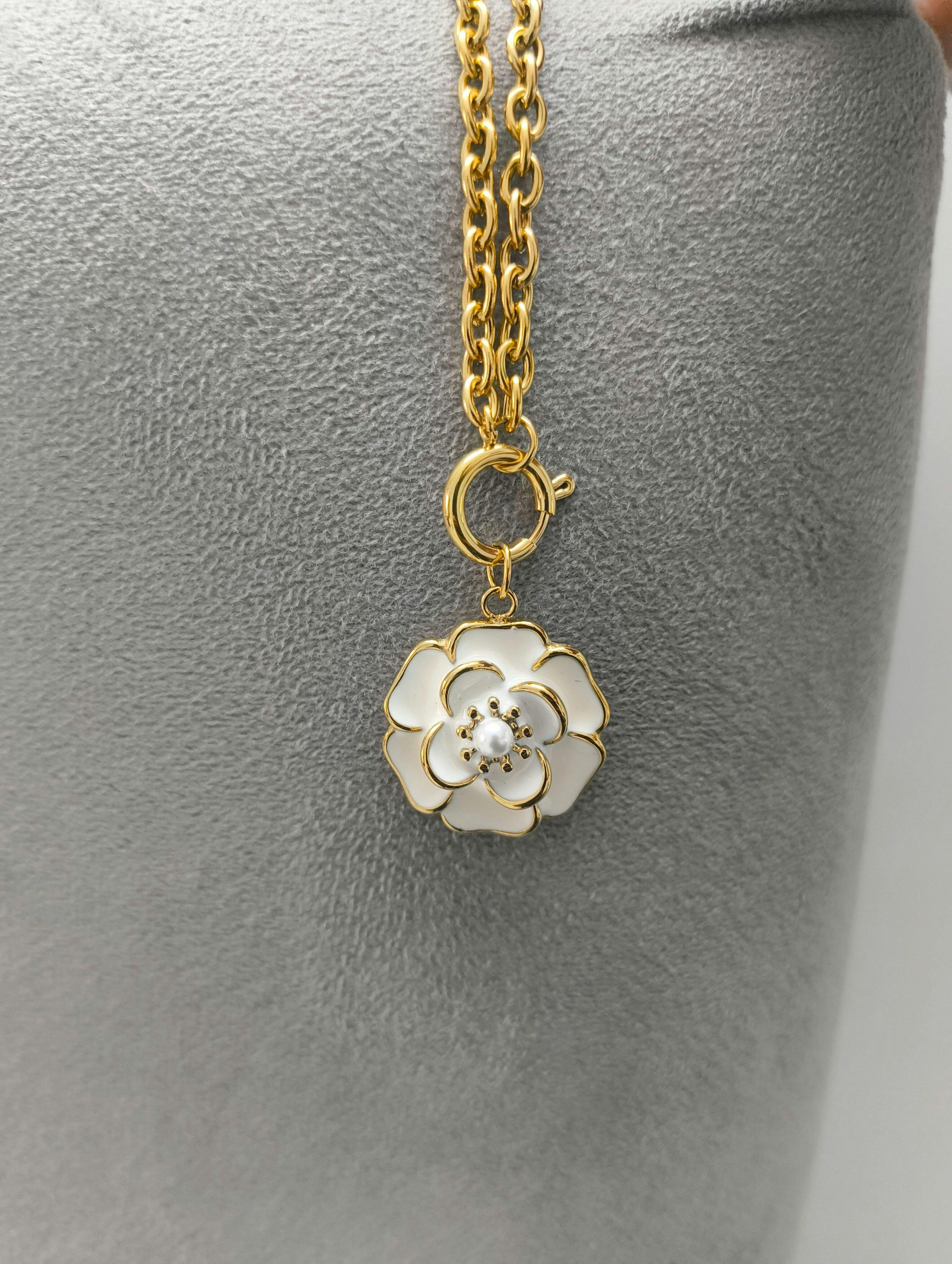 | Style | Golden chain with a flower-shaped pendant encasing a lustrous pearl |