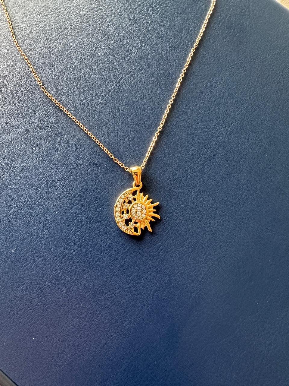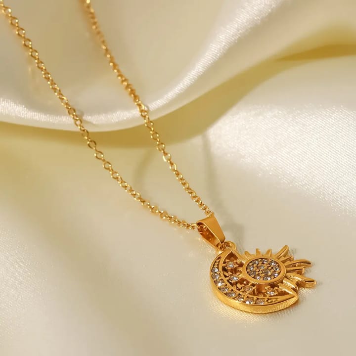 | Style | Sun and crescent moon pendant with sparkling clear stones |