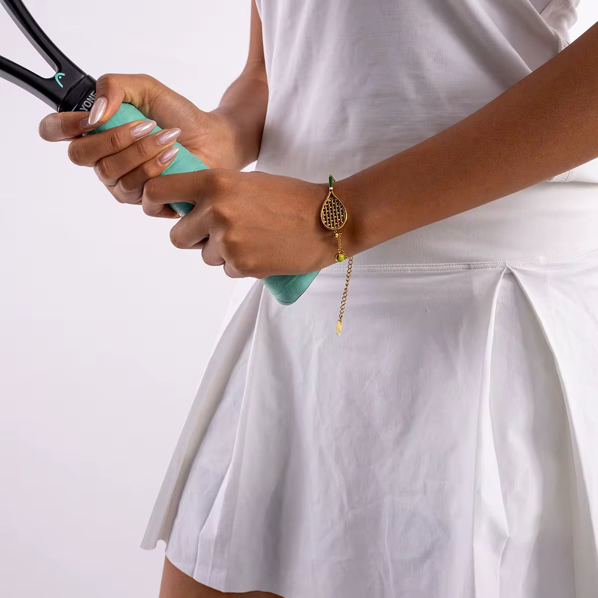 This exclusive Faye bracelet is designed to be a conversation starter and a symbol of your dedication. Its waterproof and tarnish-free quality ensures it will be a treasured part of your collection, on and off the court. Whether you're a player or a fan, this dainty gold bracelet adds a playful yet elegant touch to any outfit.